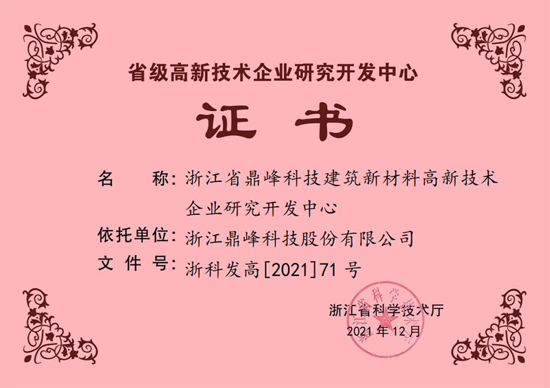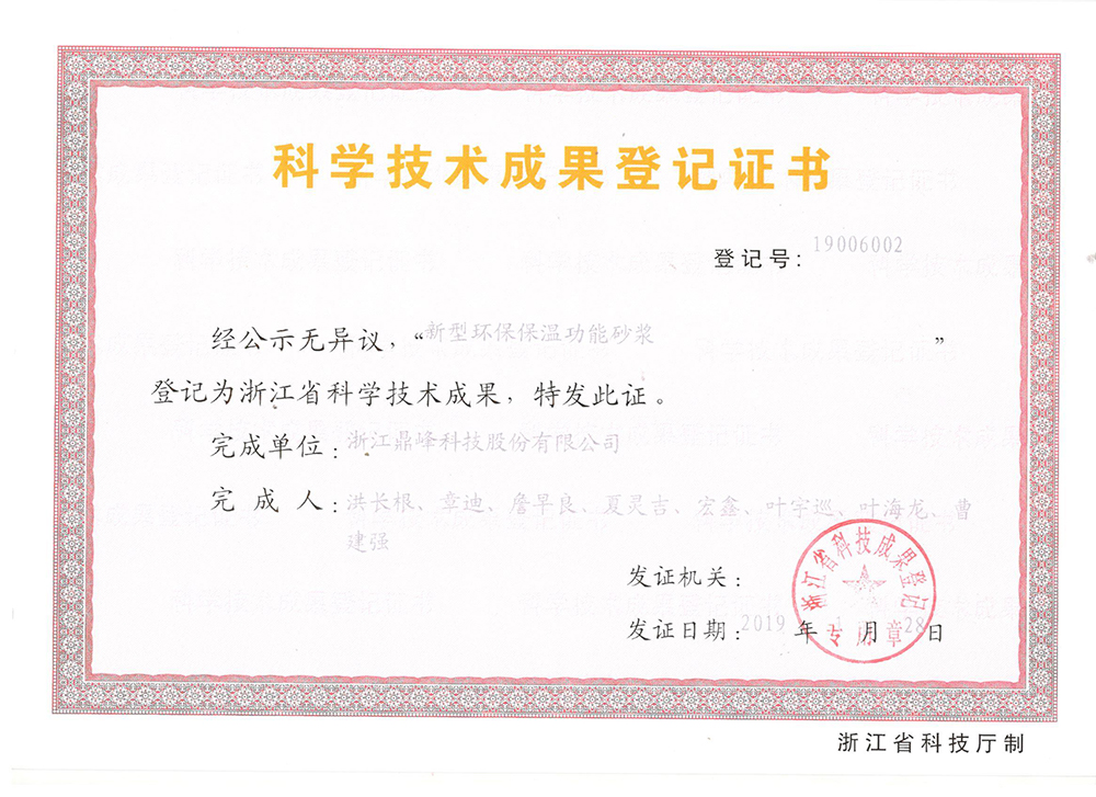 公司為國家級“專精特新”小巨人企業,國家級高新技術企業,擁有與多家高校聯合組建的省級研發中心。公司經浙江省散裝水泥發展中心、浙江省建筑業管理局備案,為浙江省首批通過試驗室驗收的企業。近年來公司陸續通過了質量管理體系認證、干混砂漿產品認證、環境管理體系認證、能源管理體系認證、職業健康管理體系認證、中國綠色建材產品認證、工業化與信息化融合管理體系評定。自2017年起公司已連續五年被中國建筑材料聯合會預拌砂漿分會評為“全國預拌砂漿行業先進企業/優秀企業/最具推動力企業”。